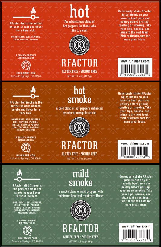 These three RFactor Pepper Blends Hot, Hot Smoke and Mild Smoke will fit right into your seasoning arsenal!
